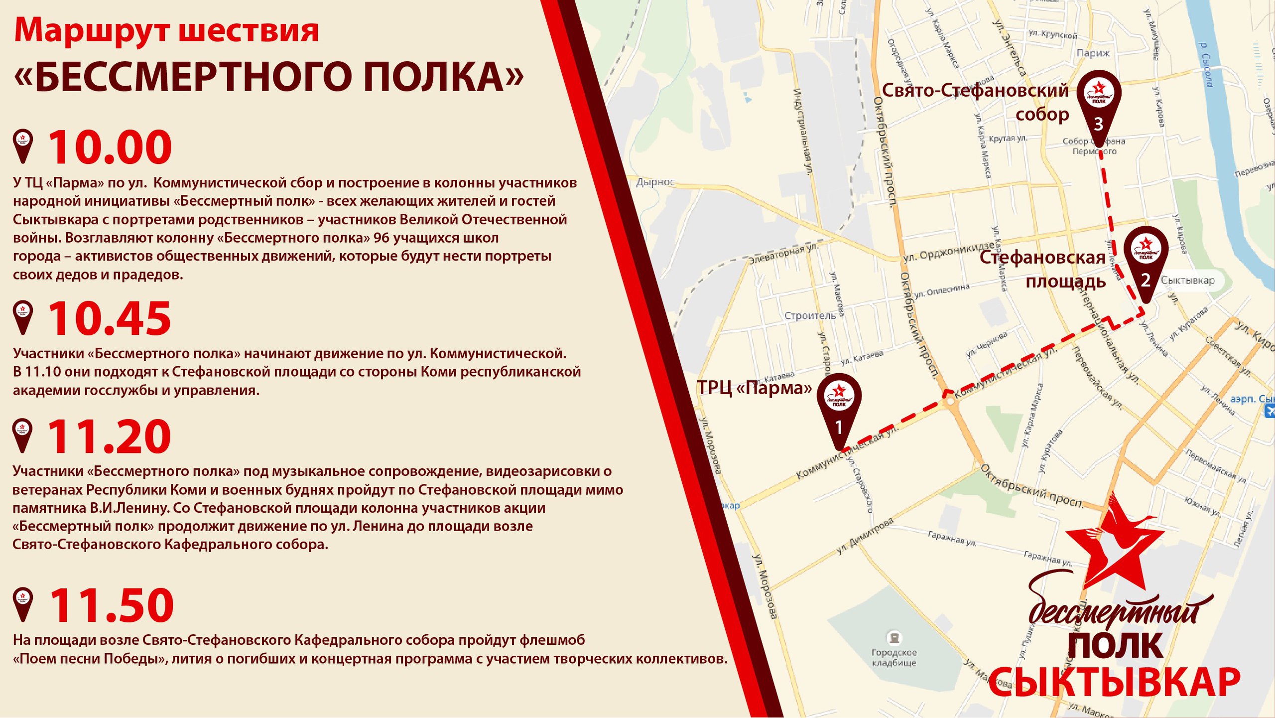 Предлагаем ознакомиться с планом мероприятий и маршрутом шествия «Бессмертного полка».